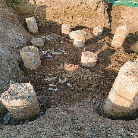 泰安破桩头:工作装置由多个相同规格的液压缸组不同直径的破桩机,达到各种各样直径的桩型破桩头的规定,这样的液压缸的活塞选用碳素钢而成,能达到各种各样标号的水泥混凝土的破碎规定。动力源可选用固定的泵房或者其余可的工程机械,一般情形下,在多层建筑桩基施工中选用泵房的比较多,这样的组成方式的机器设备整体项目投资较为小,但是不是很方便快捷,适合用以端承桩的桩头破除中;在桥梁工程施工中选用方便快捷的挖掘机做为动力源的比较多,将挖掘机的挖斗取下,在挖斗与大臂连接轴处悬挂破桩机的吊装链,将这两种机器设备机械设备组成在一起,随后再将挖掘机的一条液压缸的液压油路根据平衡阀连接到破桩机的液压缸油路上,用以驱动破桩机的液压缸组工作。这样的组成的破桩机方便快捷,工作面较为广,适用于桩不集中,工作前线长的作业项目,但是项目投资相对较为大。